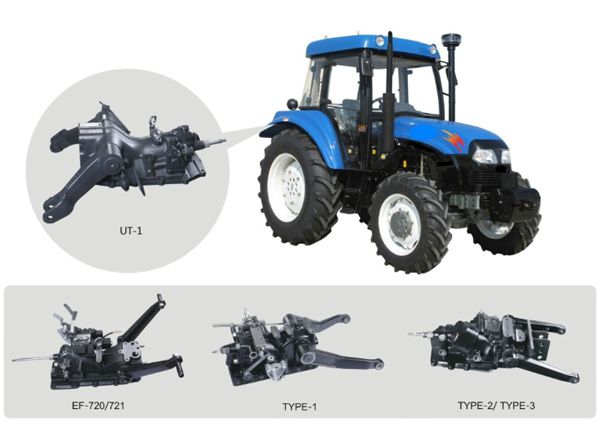 يتم توصيل الرافعة الهيدروليكية في الجرار بأذرع الرفع الهيدروليكية من خلال وصلة ثلاثية النقاط، حيث يتكون من غلاف متصل بالعلبة التفاضلية وأذرع الرفع والعمود الرئيسي وذراع الكرنك وقضيب التوصيل والأسطوانة والمكبس وصمام التحكم.